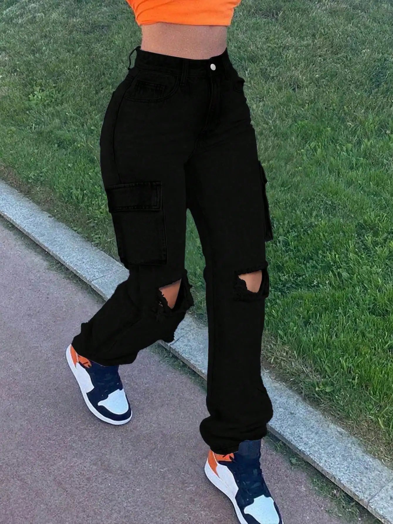Step into contemporary Y2K style with wave-shaped side pockets and a clean wide-leg silhouette—crafted by a trusted brand.