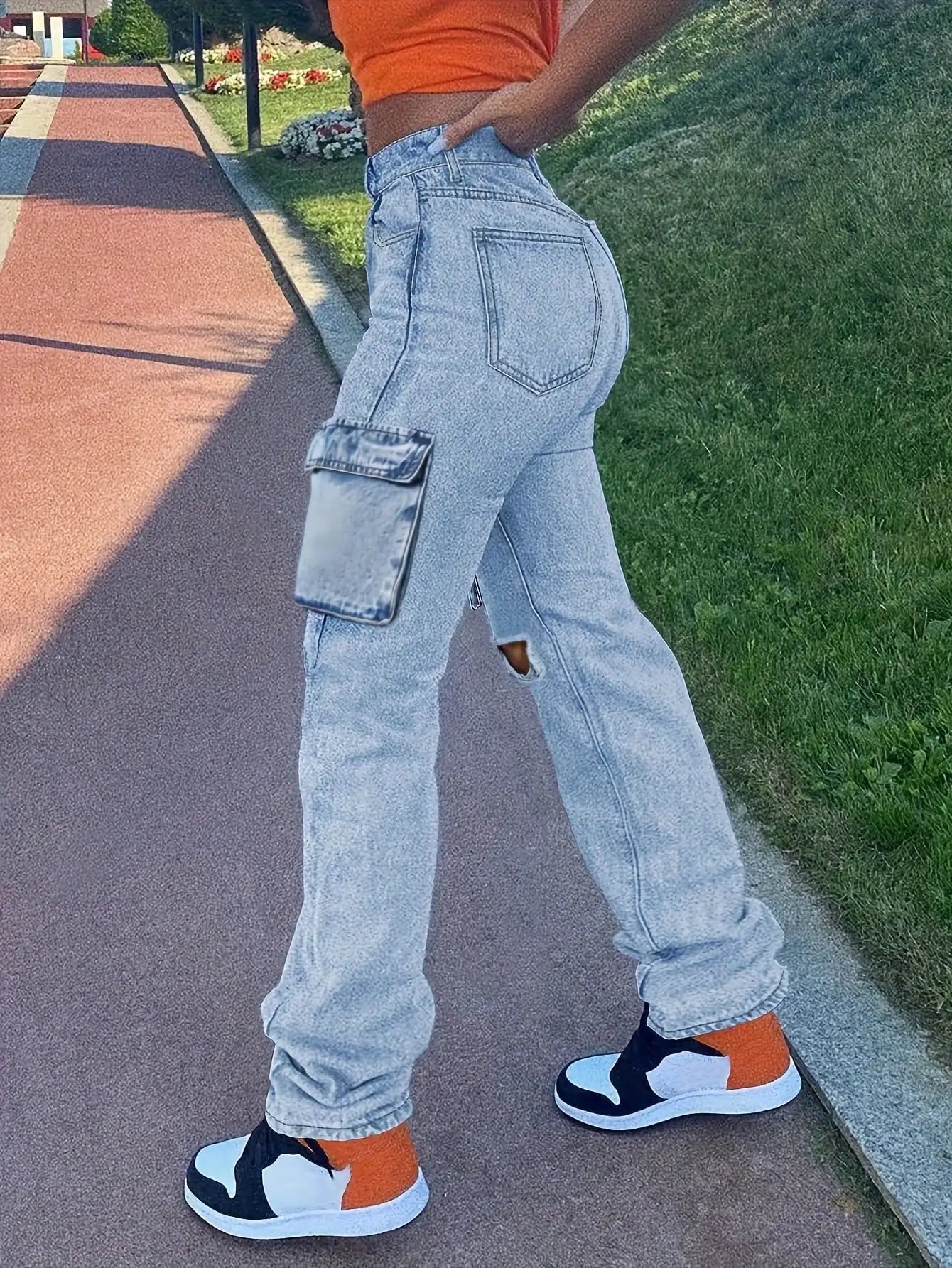 Guangdong Women Jeans Wave Pocket Wide Leg Regular Fit